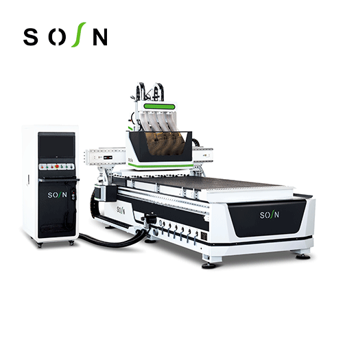 Equipped with 4 spindles,this machine allows you to carry out cutting,dilling,slotting and grooving